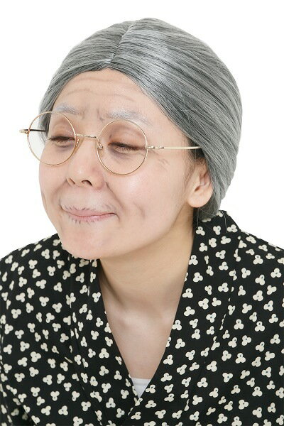 リアルで面白い!おばあちゃん かつら お婆ちゃん 祖母 コスプレ 桃太郎 舞台劇 昔ばなし 変装 お年寄り 演劇 ハロウィン イベント 忘年会 ■ 商品説明おばあさんになりきれる、お団子結びの白髪まじりウィッグです。