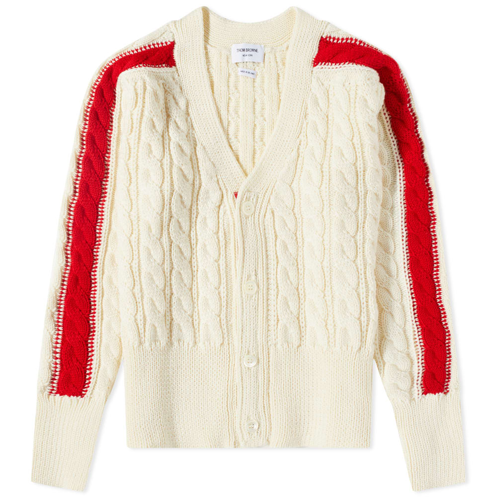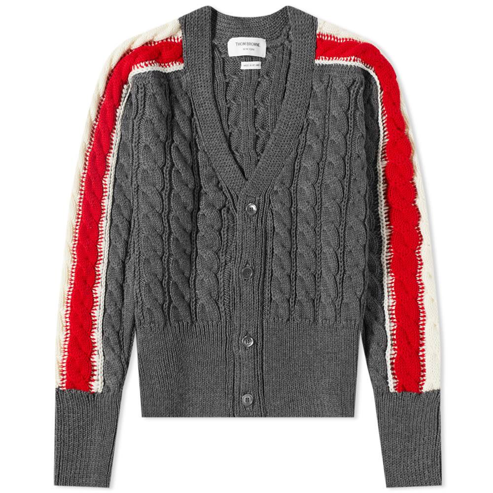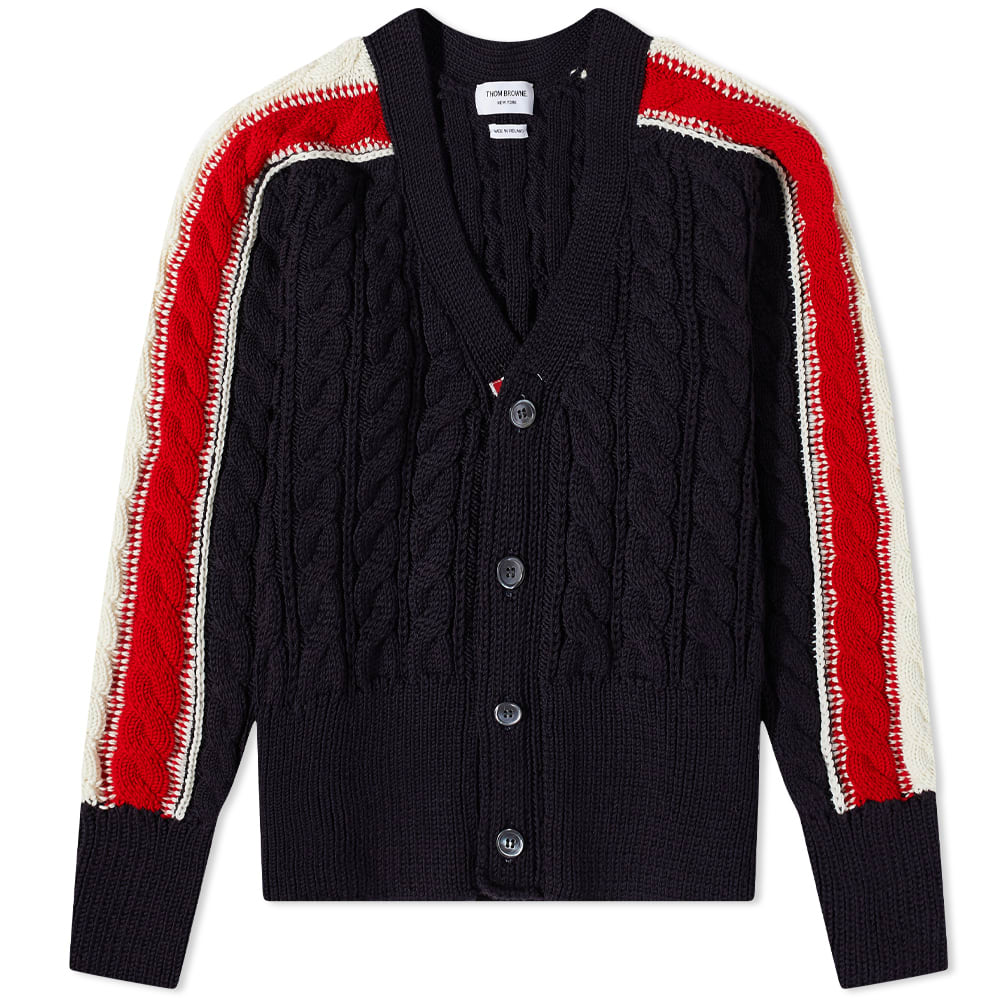 トム ブラウン THOM BROWNE トムブラウントリコロールスリーブストライプケーブルニットカーディガン トップス メンズ 男性 インポートブランド 小さいサイズから大きいサイズまで