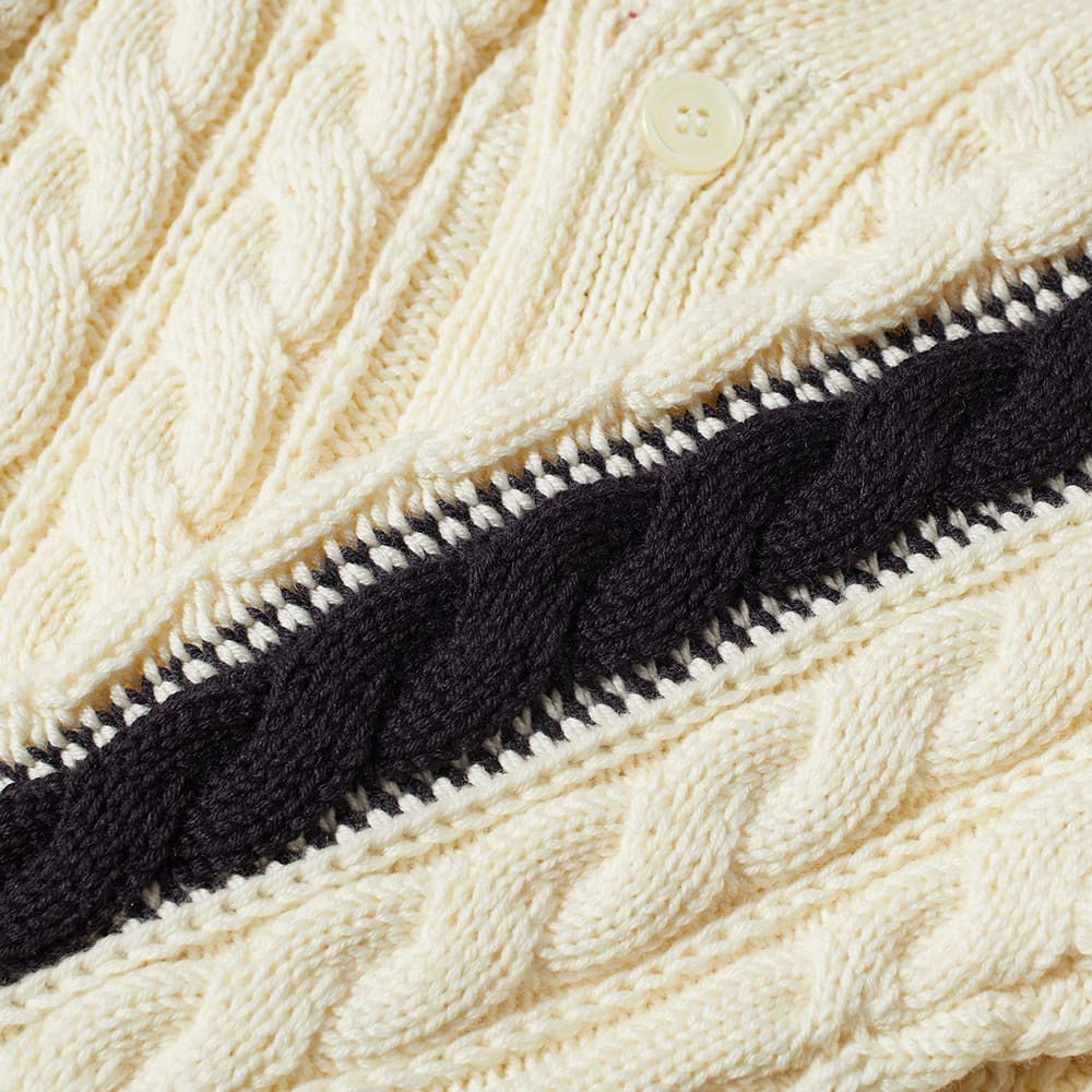 商品説明 Thom Browne Tricolour Sleeve Stripe Cable Knit Cardigan ※海外から取り寄せの為、10日間程お時間を頂いています。