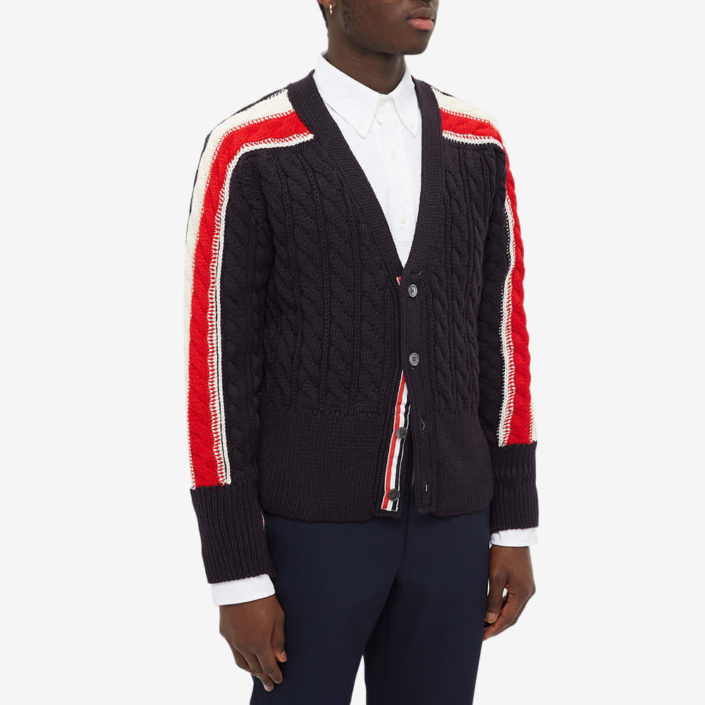 商品説明 Thom Browne Tricolour Sleeve Stripe Cable Knit Cardigan ※海外から取り寄せの為、10日間程お時間を頂いています。