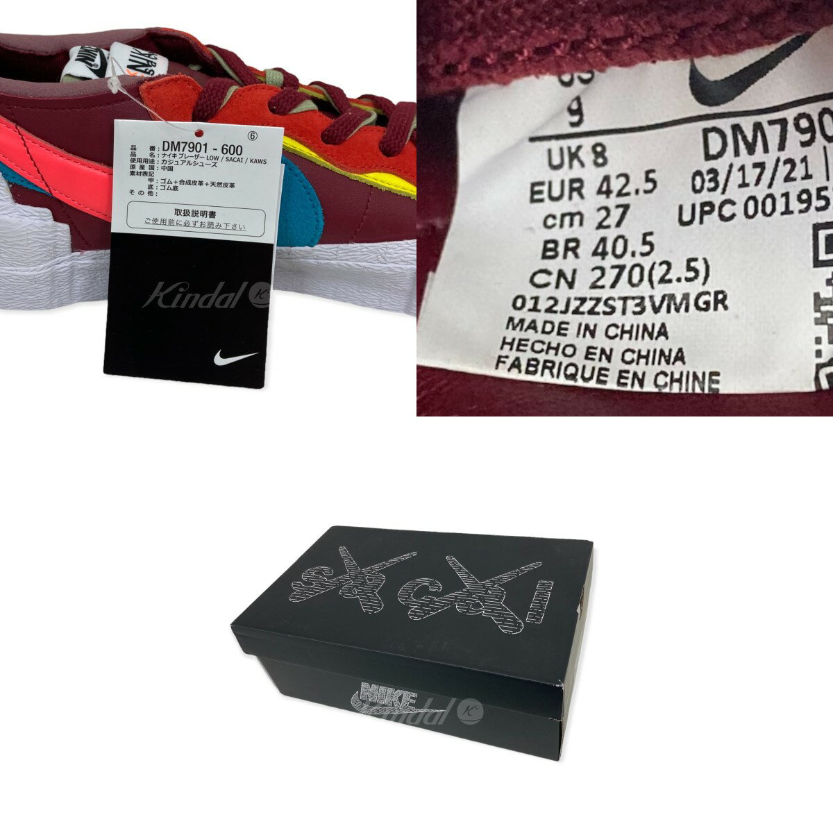 【中古】sacai×NIKE×KAWS 「BLAZER LOW」ブレザーローカットスニーカー バーガンディー サイズ:27cm 【050722】(サカイ ナイキ カウズ)