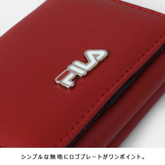 シンプルな無地にキラリと光るFILAのロゴプレートが映えるミニ財布。