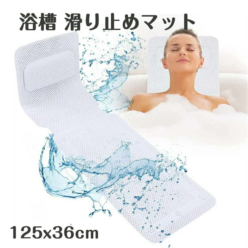 浴槽 滑り止めマット お風呂マット 浴槽マット バスマット お風呂 まくら お風呂枕 バスピロー 転倒防止 吸盤付き 防カビ 簡単収納 3D通気メッシュ 125x36cm 全身用 リラックス バス用品