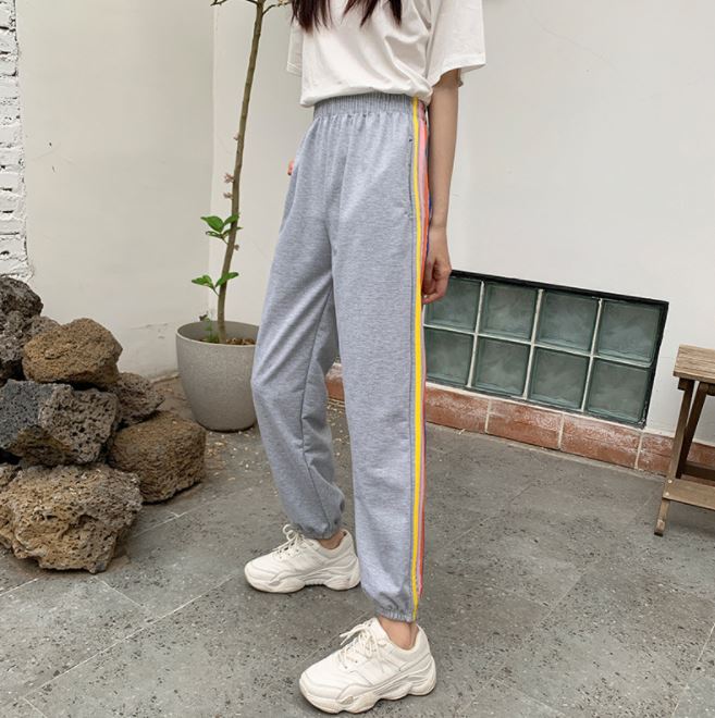【メール便送料無料】レインボースウェットレディース ジョガーパンツ ズボン ジャージ スウェット リラックスパンツ カジュアル サイドライン レインボーライン ビタミンカラー 丈短め 裾絞り 裾ゴム カジュアル ダンス アメカジ 部屋着 グレー 黒 元気な万能スウェット♪