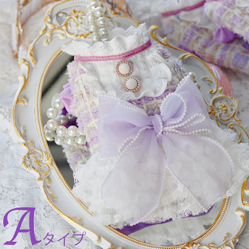 犬 服 チュールリボン付きフリフリホワイトスカート 手作り犬服 ツイードワンピース ドッグウェア お洒落着 ハンドメイド 職人手作り ペット服 ペットウェア おそろい 大人気 ペアルックおしゃれ オシャレ 父の日 母の日 敬老の日 猫の日
