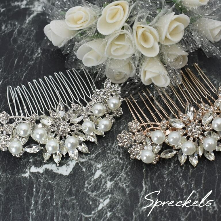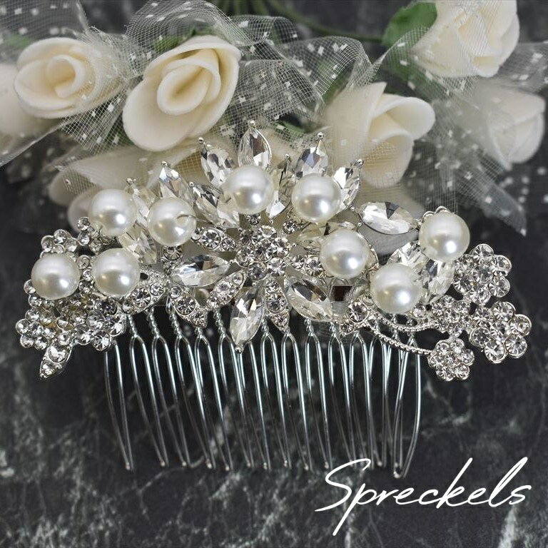 素材 : フェイクパール・アクリル樹脂・亜鉛合金サイズ:横8.5cm 高さ(コーム含む) 6cm カラー:シルバー / ローズゴールド ☆