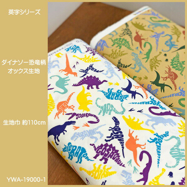 <<英字シリーズ>> 恐竜の骨格や胴体がその恐竜の名前の英字(スペル)になっている柄の生地です 生地はオックス生地。