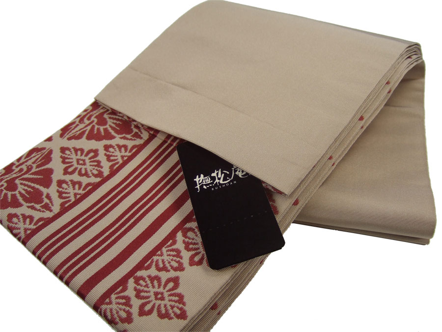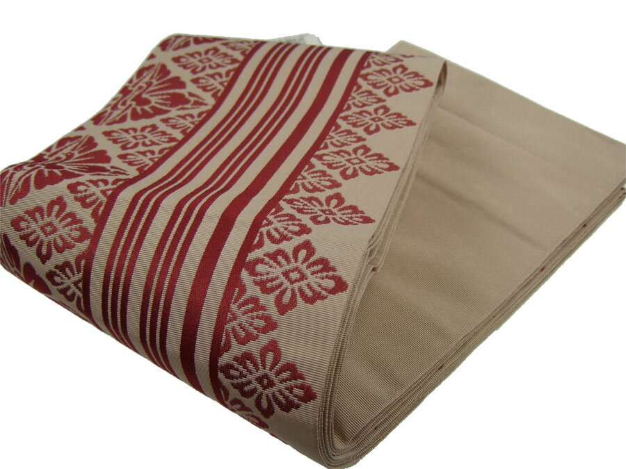 【撫松庵】半幅帯(浴衣帯)「献上(ベージュ地にエンジ)」【10P06Aug16】