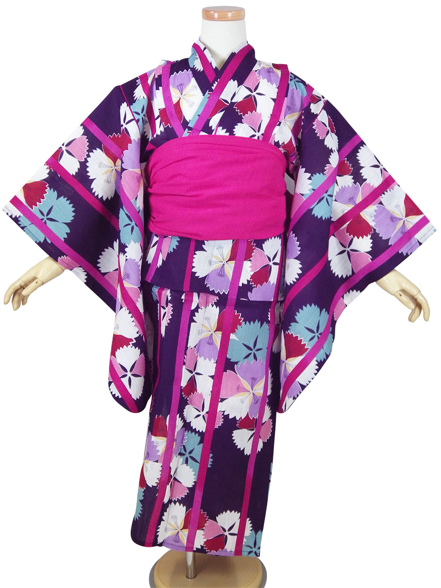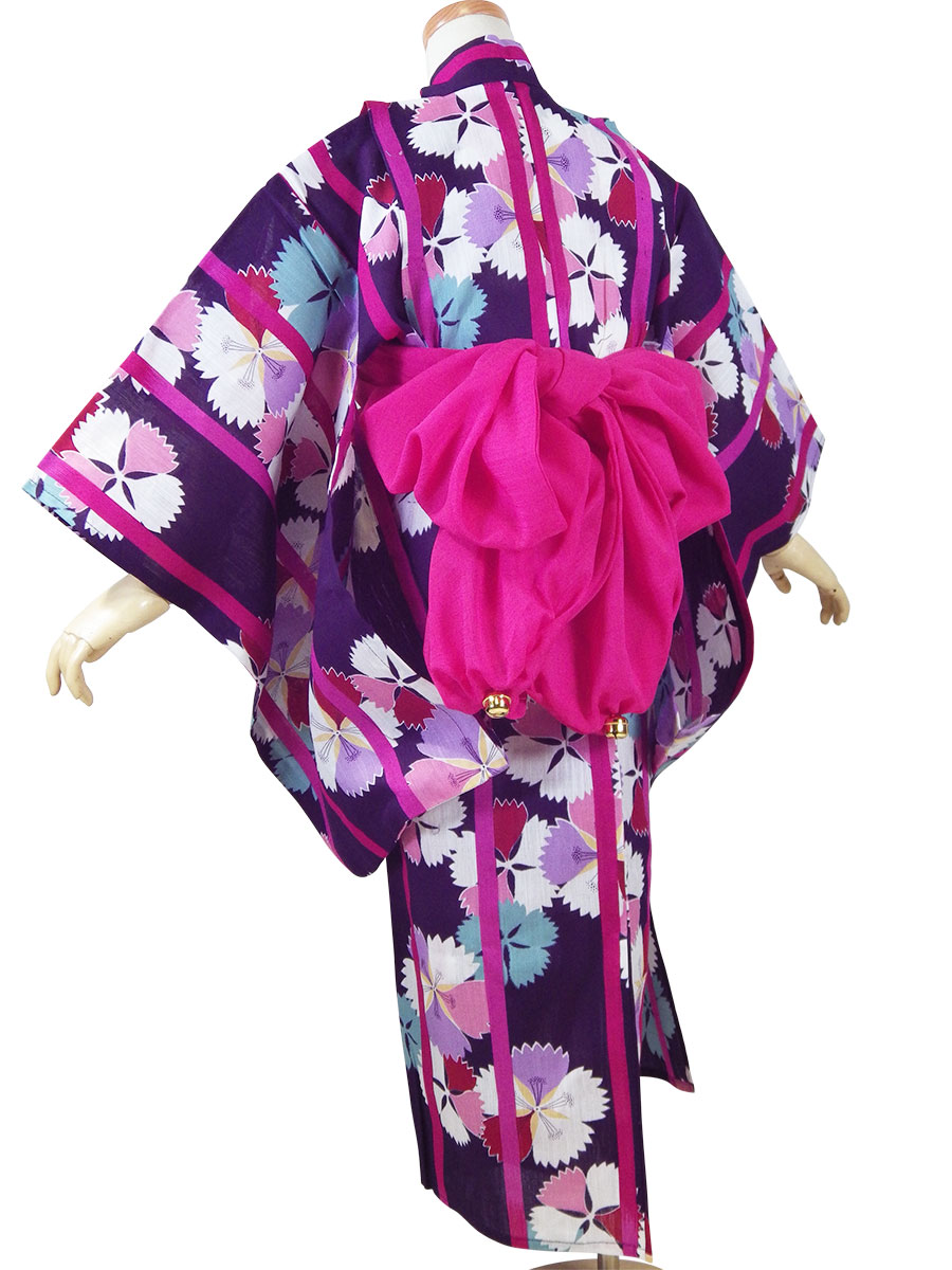 【撫松庵ジュニア】浴衣「縞撫子(コン)」【7〜8歳・120cm】【10P06Aug16】