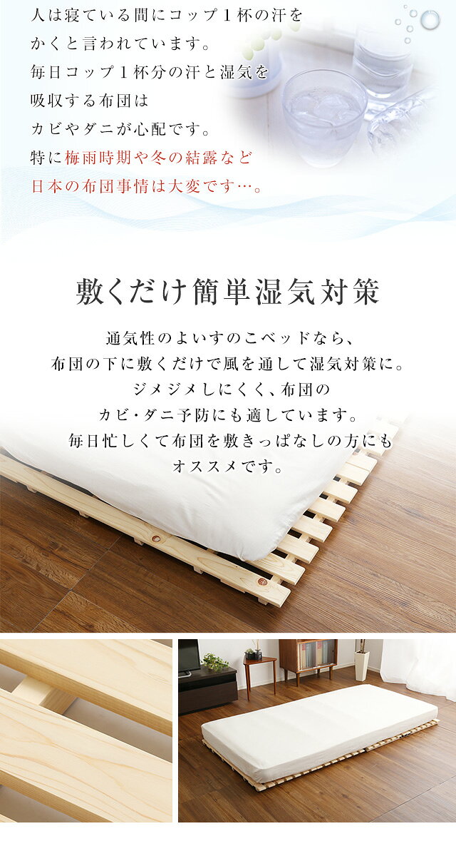 【商品について】すのこベッド二つ折り式 檜仕様(セミダブル)【涼風】■サイズ:■商品サイズ:(約)120x196x3.8cm■商品重量:(約)12.8kg■カラー:ナチュラル■素材:材質:天然木材 檜(ヒノキ)■その他:■梱包サイズ:(約)50x22x62cm■梱包重量:(約)13.5kg【すのこベッド商品一覧】ロール式 檜仕様(シングル)【涼風】ロール式 檜仕様(セミダブル)【涼風】ロール式 檜仕様(ダブル)【涼風】四つ折り式 檜仕様(シングル)【涼風】四つ折り式 檜仕様(セミダブル)【涼風】四つ折り式 檜仕様(ダブル)【涼風】二つ折り式 檜仕様(シングル)【涼風】二つ折り式 檜仕様(セミダブル)【涼風】二つ折り式 檜仕様(ダブル)【涼風】すのこベッド二つ折り式 檜仕様(セミダブル)【涼風】 【注意事項】メーカー直送の商品となりますので、「代金引換」払いは不可となります。