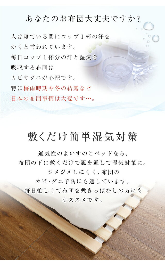 【商品について】すのこベッドロール式 檜仕様(ダブル)【涼風】■サイズ:■商品サイズ:(約)120x200x2.5cm■商品重量:(約)11.7kg■カラー:ナチュラル■素材:材質:天然木材 檜(ヒノキ)■その他:■梱包サイズ:(約)38x22x62cm■梱包重量:(約)12.3kg【すのこベッド商品一覧】ロール式 檜仕様(シングル)【涼風】ロール式 檜仕様(セミダブル)【涼風】ロール式 檜仕様(ダブル)【涼風】四つ折り式 檜仕様(シングル)【涼風】四つ折り式 檜仕様(セミダブル)【涼風】四つ折り式 檜仕様(ダブル)【涼風】二つ折り式 檜仕様(シングル)【涼風】二つ折り式 檜仕様(セミダブル)【涼風】二つ折り式 檜仕様(ダブル)【涼風】すのこベッドロール式 檜仕様(セミダブル)【涼風】 【注意事項】メーカー直送の商品となりますので、「代金引換」払いは不可となります。