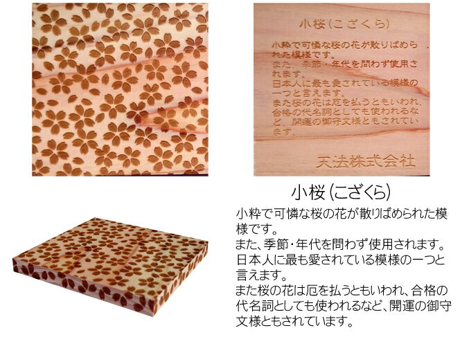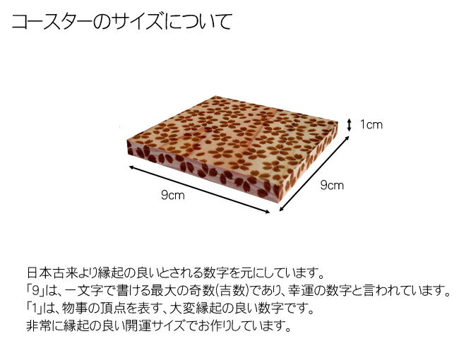 コースターの背面には、その和柄の説明も彫り込んでありますので、お祝いやお見舞いの品など、どんな場面でもご活用戴けます。