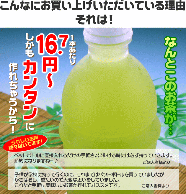 つまり1本≪16.7円〜!!≫ ペットボトルでつくるお茶選べる20パックセット ありがとうございます!▼まだまだたくさんのお声をいただいています♪