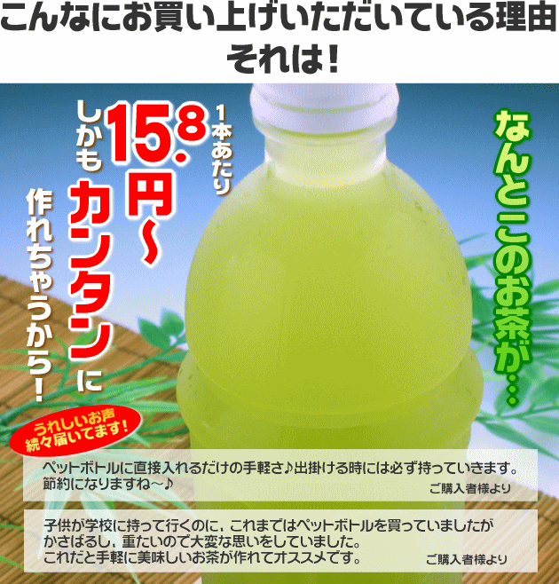 つまり1本≪15.8円〜!!≫ ペットボトルでつくるお茶選べる30パックセット ありがとうございます!▼まだまだたくさんのお声をいただいています♪