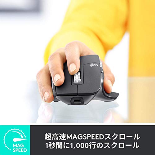 【超高速スクロールホイール搭載MX Masterシリーズ最新モデル】1秒間に1,000行のスクロールが可能な超高速スクロールホイールを搭載したMXシリーズの高機能ワイヤレスマウス【人間工学に基づいたデザイン】人の手で成形された快適形状のエルゴノミクスデザイン。