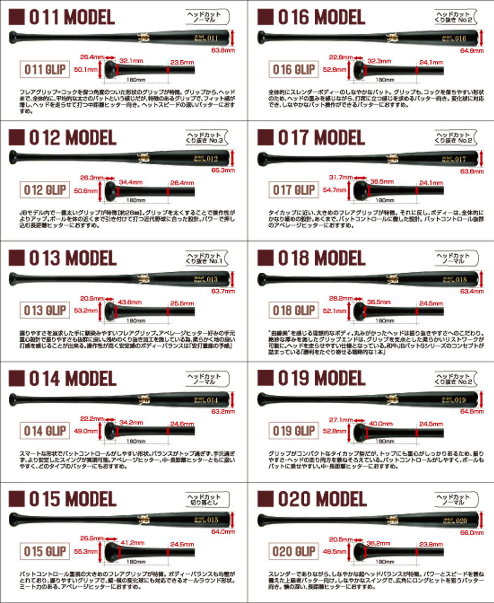 JBバット20モデルをベースに、サイズ、カラーをお好みに変更出来るオーダーバットです。