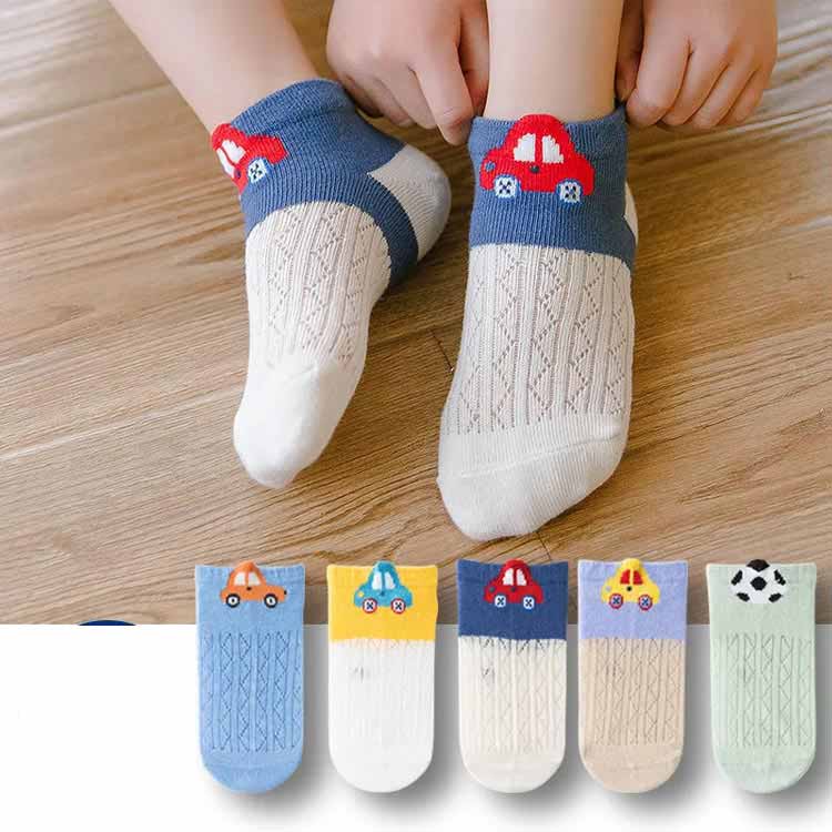 子供 靴下 5足セット ショートソックス 薄手 綿 春 夏 秋 キッズ アンクル丈ソックス ベビー 男の子 女の子 ジュニア メッシュ 通気性 コットン かわいい 車柄 くつ下 くつした 通園 通学 送料無料