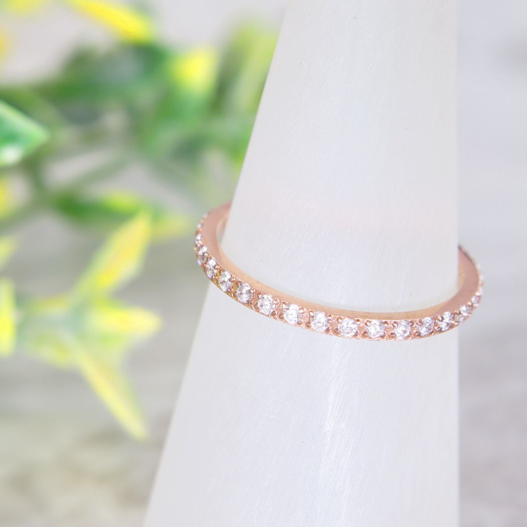 リング1周全てにストーンを嵌めており、上品な輝きが楽しめます。